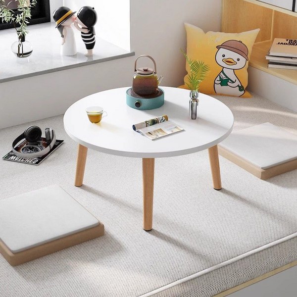 28번: JUNBI 좌식 거실 낮은 원탁 티 테이블 협탁 원형 40 x 30 cm, 화이트