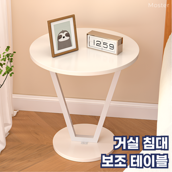 12번: 모스터 북유럽풍 침대 거실 협탁 보조 쇼파 사이드 테이블, 화이트 화이트
