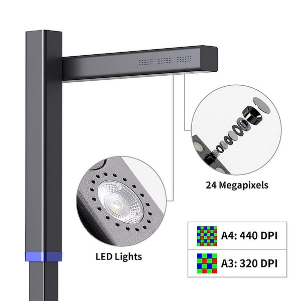 22번: CZUR Shine Ultra Pro 휴대용 문서 스캐너 24MP 북 스캐너 최대 DPI 440 USB 문서 카메라 A3 대형 포맷 북 스캐너 높이 조절 가능 윈도우 및