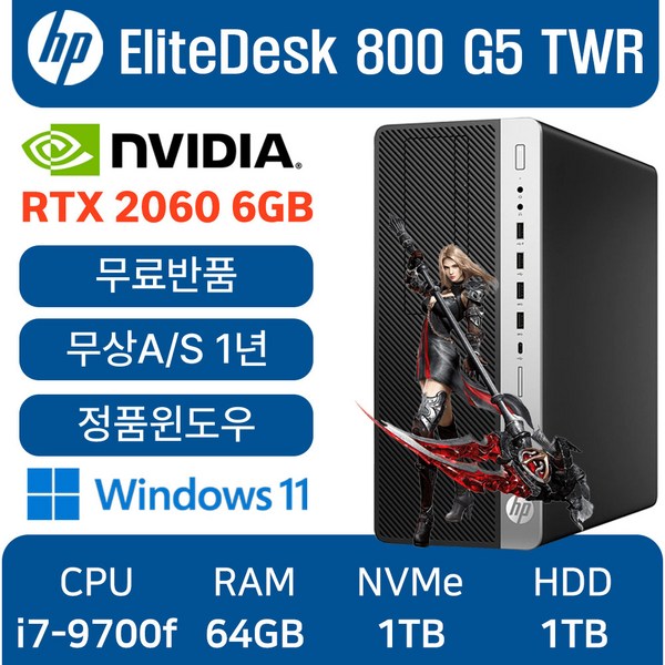9번: HP EliteDesk 800 G5 TWR 게이밍컴퓨터 인텔 core-i7 RTX 2060 6GB, 블랙, EliteDesk 800 G5_RTX 2060, 1TB, 64GB, WIN11 Pro