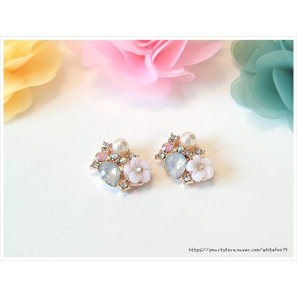 30번: 여우스토리 자개꽃물방울진주장식 리본중앙마무리장식 보석리본장식 리본중앙장식 리본공예재료 진주보석장식 큐빅보석장식 하양여우, 10개