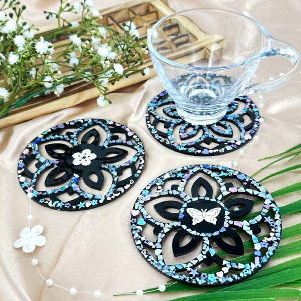 21번: 오렌지e몰 자개공예 나전칠기 만들기 키트 한국기념품 한국전통선물 DIY 컵받침 – 원형 옵션, B도안