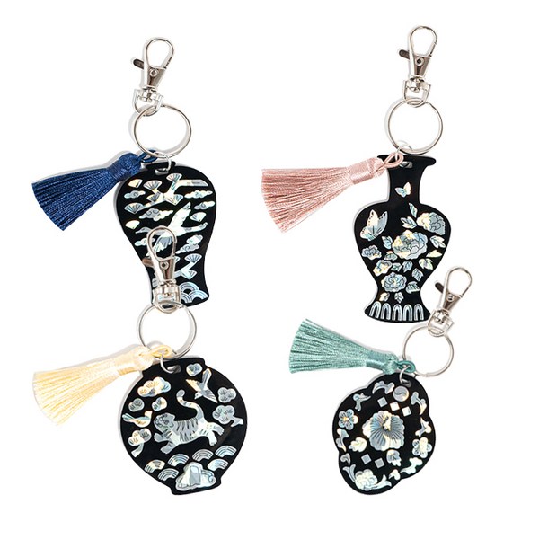 27번: [오피스스쿨] 민화샵 KC인증 자개 스티커 키링 4종 택1 DIY 전통공예 한국기념품 키링만들기, 1개