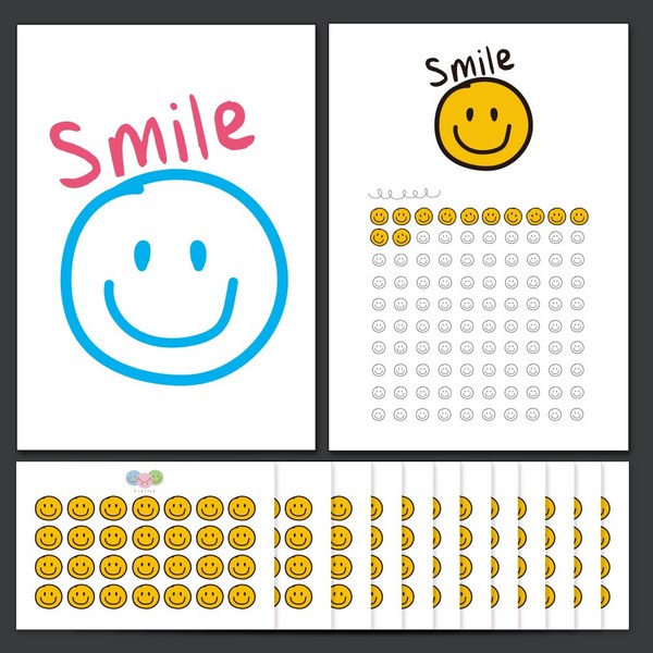 12번: 풀필 감성 유니크 포스터 습관체크 목표달성 루틴 챌린지 위클리 플래너 챌린지 100일 B4 사이즈 칭찬스티커판 칭찬스티커 세트, 01_스마일, 3세트