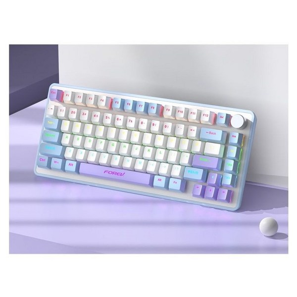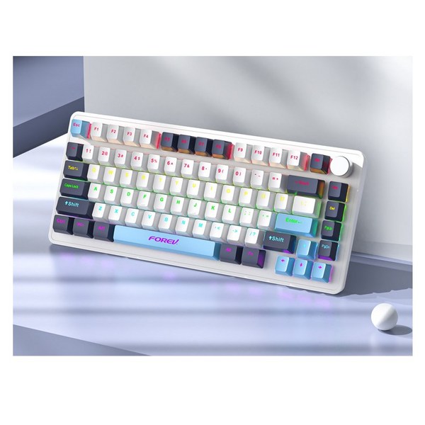 30번: 포렙 유선 교체축 기계식 게이밍 키보드, 청축, FV-K82, 화이트/블루