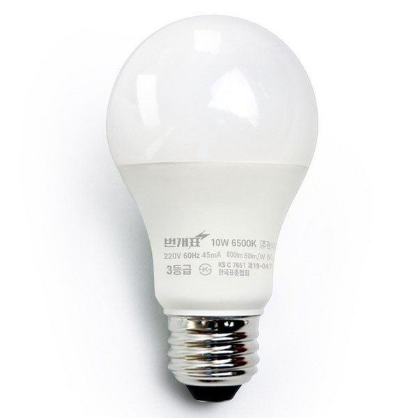 10번: 번개표 LED 전구 10W, 주광색, 1개