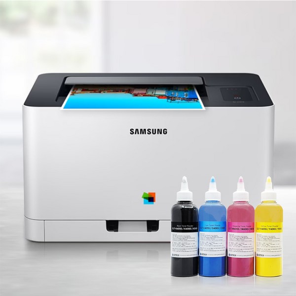 24번: 삼성 무한 컬러 레이저 프린터 SL-C563W 무한프린터 토너절약 90% 리필토너 무료 마개작업 무료, SL-C563W 무한프린터+고무마개작업+파우다4색