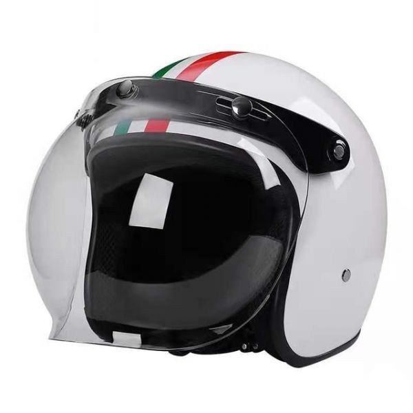21번: 레트로 빈티지 오픈 페이스 오토바이 헬멧 남녀 공용 바이크 제트 파일럿, M, WhiteStripe2