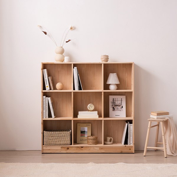 13번: M컴퍼니 원목 3단 책장 전면 거실 인테리어 책꽂이 전면 우드 수납장 낮은 사무용 수납박스 서재 오픈형 책 수납함 스탠드 보조 선반 틈새 정리함 간이 북선반 MD:HS-4665