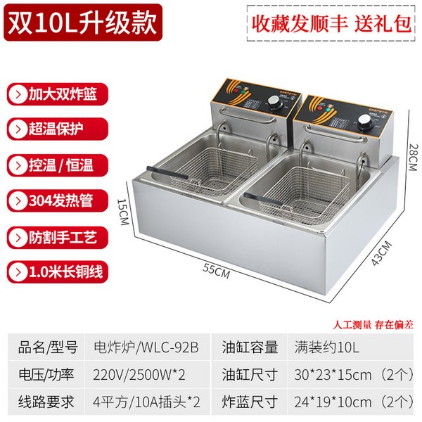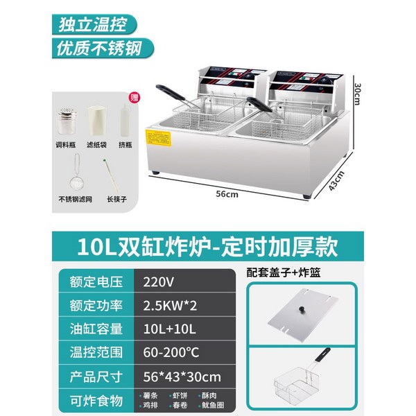 21번: 치킨 감자튀김 A타입 방지 10L 후라이드 가정용튀김기 소형 더블 발열관, 5 10L 더블기통 업그레이드 업그레이드 온도제어 두꺼