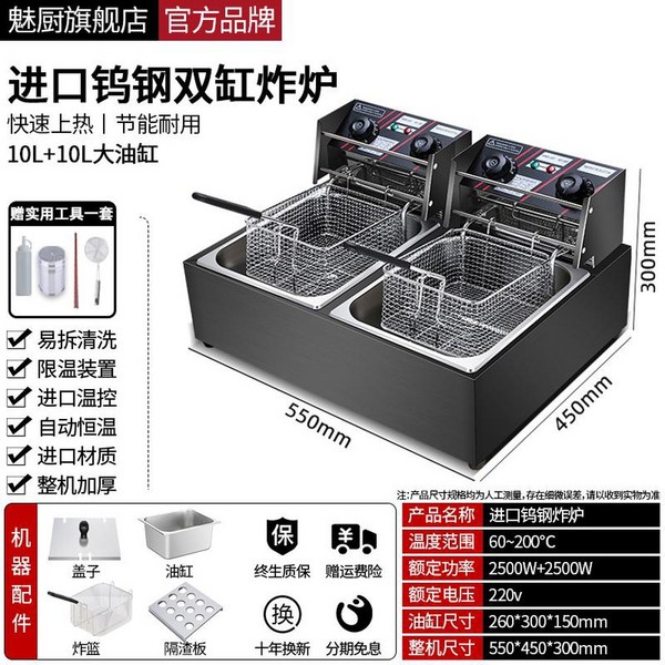 18번: 업소용 튀김기 전기 가정용 10L 미니 치킨 소형 탁상형 기계 감자, 40 텅스텐강 수입 20L-1쌍기통 튀김로-1초온보호