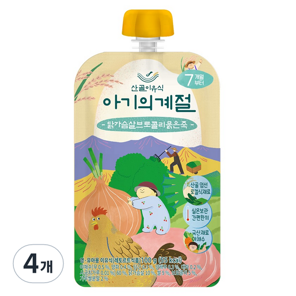 21번: 에코맘의산골이유식 아기의계절 중기 닭가슴살 브로콜리 묽은죽, 100g, 4개