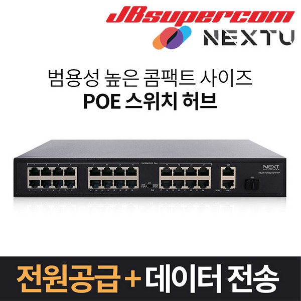 9번: 이지넷유비쿼터스 넥스트 NEXT-POE327SFP-TP 100M 24포트 GbE 2TP/1SFP POE스위치 – JBSupercom, 1개