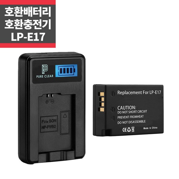 24번: 퓨어클리어 캐논 LP-E17 배터리1+충전기1 EOS 200DII 200DM2 200D 800D 850D 760D 750D 77D, LP-E17 배터리+충전기