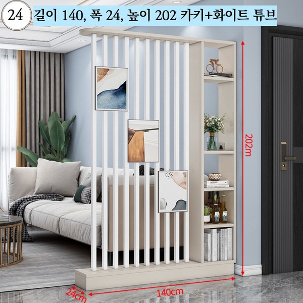 24번: 공간분리 거실 파티션 선반 칸막이 입구 수납 자취 원룸 조립형 현관, 길이 140 폭 24 높이 202 카키+화이트