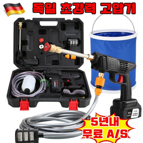 13번: [독일 기술] 고압 세차기 세척기 듀얼 터보 무선 물총 다기능 휴대용 고압세차기 충전식 무선 세차기 긴 배터리 수명 사은품 랜덤 증정, 5580VF+배터리 1개