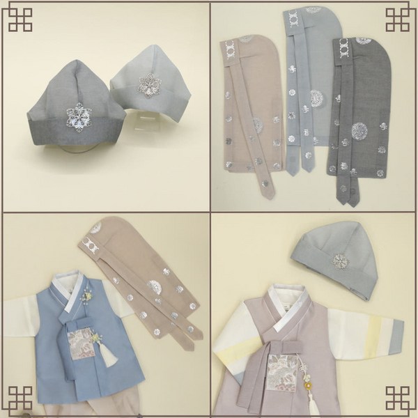 25번: 베이지 복건 남아 한복 아기 돌 백일 전통 JBB01