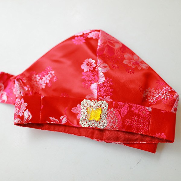 30번: 설희 빨강 양단 장식 왕건 남아 한복모자 도령모 복건