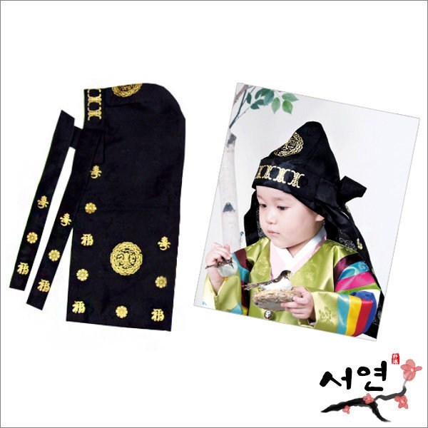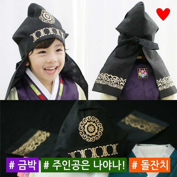 24번: 소문난집 금박도령모 복건 남아한복 아동 유아 돌 아기 한복모자 왕건모
