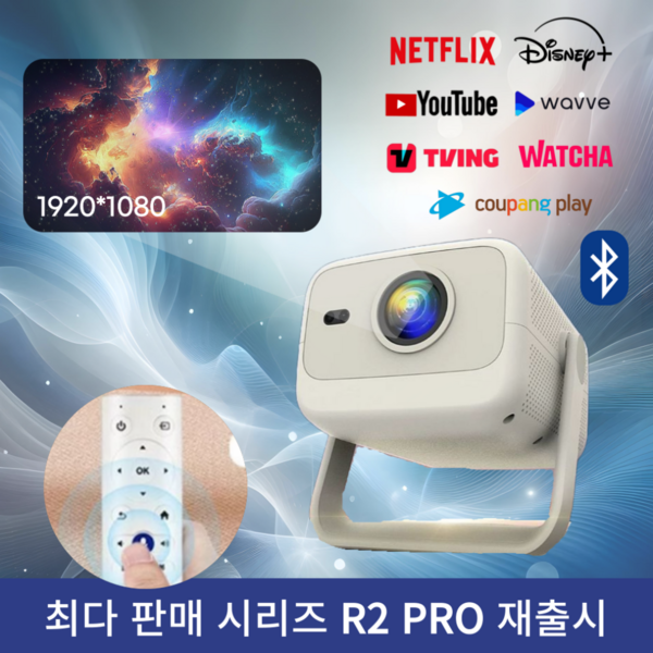 26번: 데이오 무선 미니 빔프로젝터 4k 빔프로젝트 빔 스마트 휴대용 가정용 캠핑용, R2 PRO