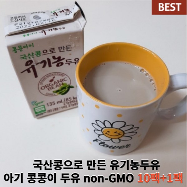 25번: [국내산/국산] 10팩+1팩 콩콩아이 국산콩으로 만든 유기농두유 어린이 아기 콩콩이 두유 non-GMO 유기농 어린이 아기 애기 간식 유아 두유 콩두유, 135ml, 11개