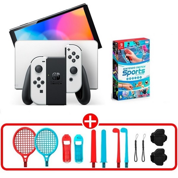 1번: 닌텐도 스위치 OLED 화이트+스위치 스포츠+스포츠 올인원 악세사리 키트 세트