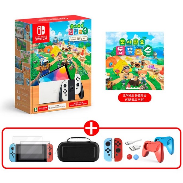 14번: [온라인 공식판매처 에스엠퓨처스]닌텐도 스위치 OLED 본체 화이트 + 모여봐요 동물의 숲 게임타이틀 +악세서리 풀 패키지