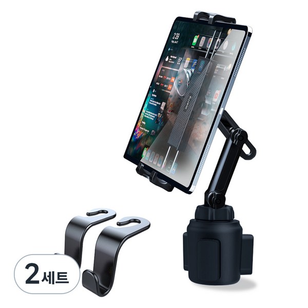 21번: 아이베리 HQ 차량용 태블릿 휴대폰 컵홀더 거치대 + 다용도 후크 걸이 2p 세트, 블랙, 2세트