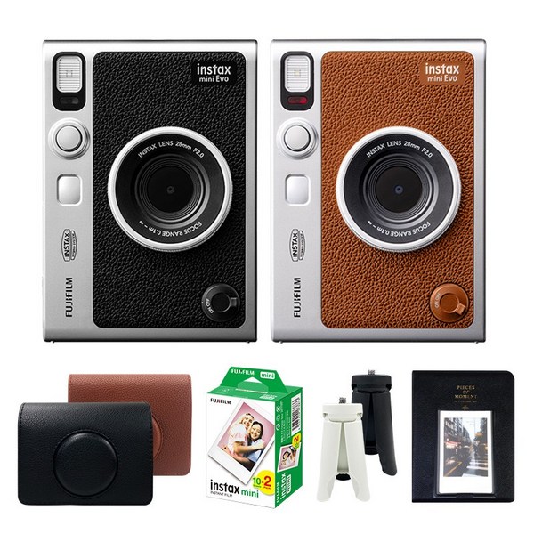 22번: 인스탁스 미니에보 mini evo 즉석카메라+필름 20장+전용가방(톤온톤)+선물세트, 1개, evo 브라운