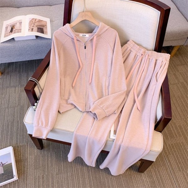 1번: 호미존 여성 트레이닝 셋업 후드 집업 긴팔티 와이드 팬츠 투피스 세트 빅사이즈