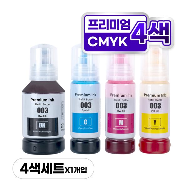 4번: 엡손호환잉크 T00V 4색세트 L1110 L3100 L3106 L3156 L3210 L3216 L3256 L5190 L5196 L5290, T00V (검정+파랑+빨강+노랑) 4색세트, 1세트