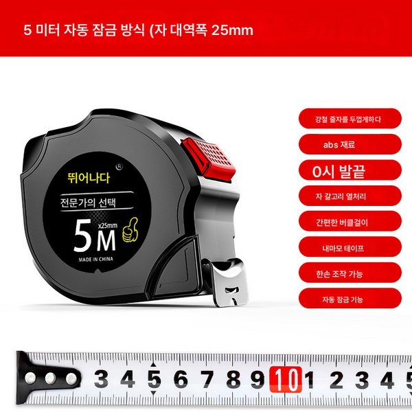 15번: 권척 가정용 두껍고 단단한 5미터 자 마모 방지 미니 공사장 자동 내구 3자 10미터 자, 자체잠금타입10m*25mm, 1개