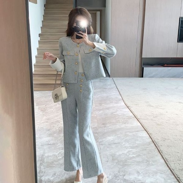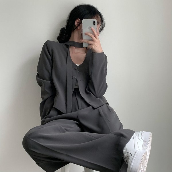 18번: 분위기 여신 초가을 긴팔 정장 코트 프리미엄 투피스 캐주얼 팬츠 세트