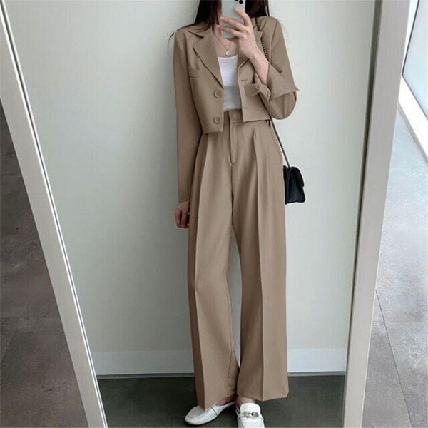 2번: 여성 정장 세트 캐주얼 숏 자켓 + 슬랙스 와이드 팬츠 상하의 투피스 루즈핏 기질 정장 셋업 MJS