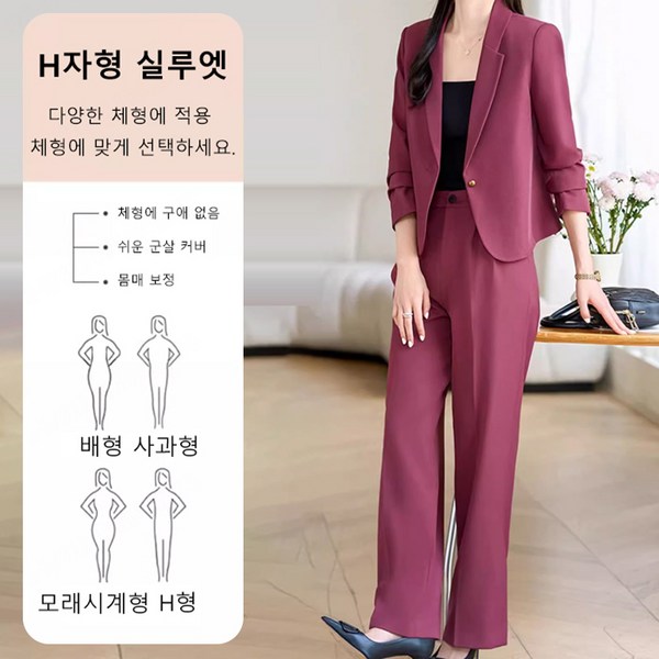 9번: 스판 정장 세트 셋업 수트 투피스 여자 빅사이즈 데일리 세미 [델리아]