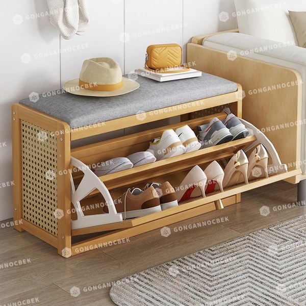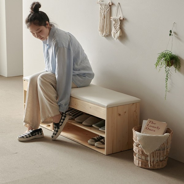 10번: JS리빙 아파트 좁은 현관 벤치 신발장 정리대 간이 선반 조립식 신발정리대 수납 틈새 미니 슈즈렉 보관 이동식 수납장 대형 신발 정리함 [interior @032571B03A], 원목벤치의자[중량 약3.2kg]