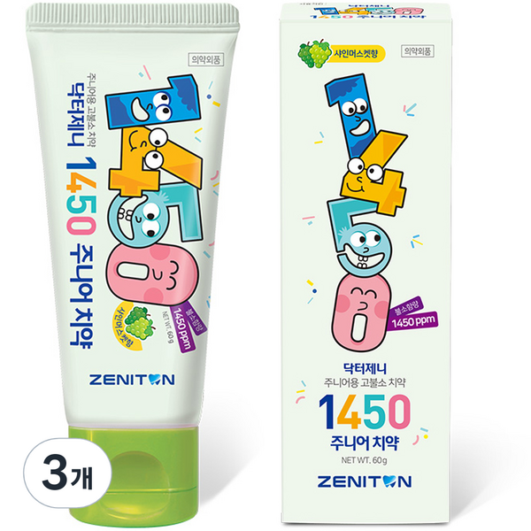 2번: 제니튼 닥터제니 충치예방 1450 치약 3 SET (자두사과/오렌지/샤인머스켓/라즈베리/복숭아) + 미니치약 3개, [인기] 자두사과1/오렌지1/샤인머스켓1, 60g