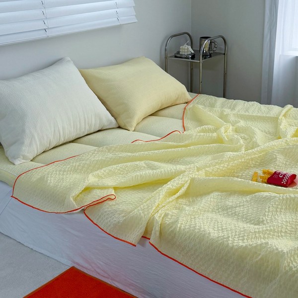 30번: 온기브 키치라인 홑이불 냉감 시어서커 여름 얇은 이불 (SS/Q), 옐로우
