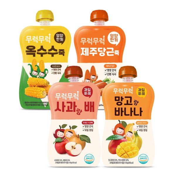 11번: 무럭무럭 키즈죽 과일퓨레 모두모아 16팩, 8종, 100g, 16개