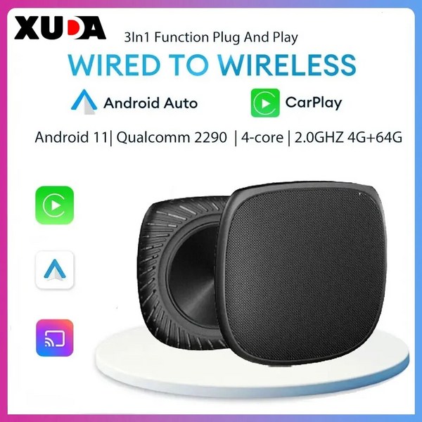 26번: XUDA 미니 유선-무선 AI 박스 카플레이 5G 와이파이 및 블루투스 5.0 안드로이드 자동 플러그 앤 플레이 비유도 연결 2 in 1 안드로이드오토, 1개