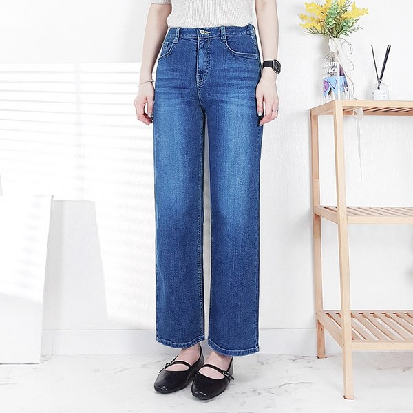 1번: 103st 하이웨스트 세미 와이드 데님 팬츠 2컬러/여성 밴딩 스판 데님 팬츠 통청바지