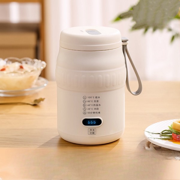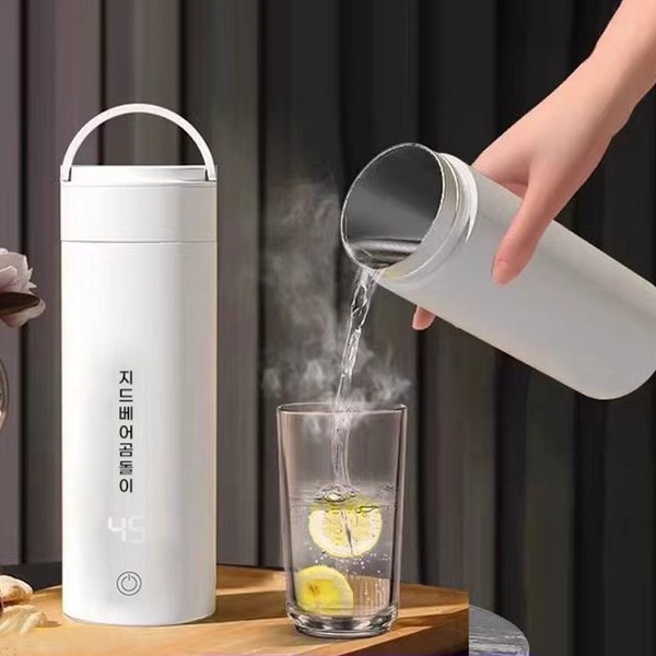 22번: Apnoo usb 가열텀블러 휴대용 전기포트 미니전기포트 여행용전기포트 주전자 4단계 조절 보온 500ml, 화이트