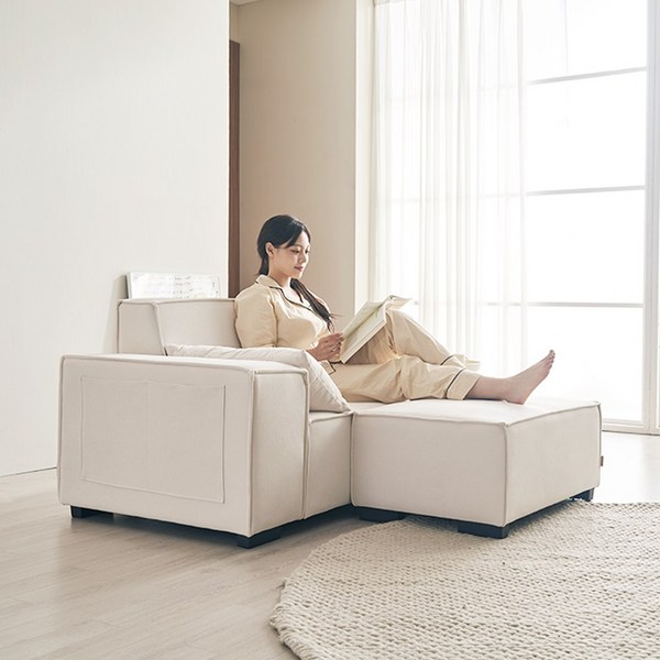 7번: 퍼리든 뮤즈 패브릭 2인용 쇼파 + 쿠션 2p + 스툴 방문설치, 아이보리