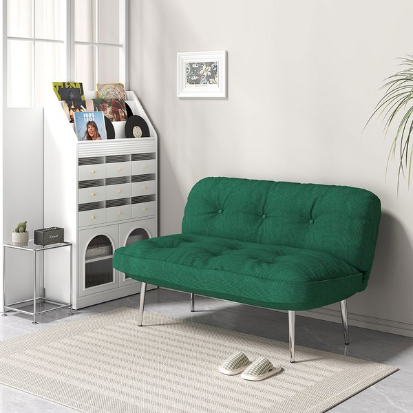 20번: 소하임 커버세탁 레트로 2인 소파 체어, 그린