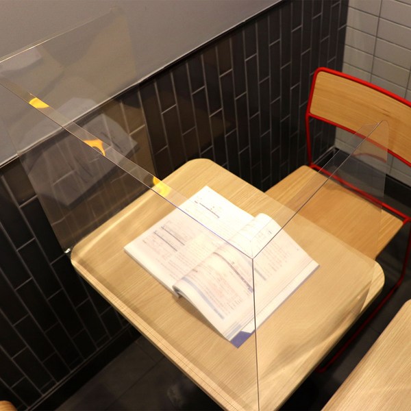 26번: [강화도] 3mm 불투명 아크릴 가림막 견고한 아크릴 칸막이 학교 관공서 학원 식당 회의실 일자형 대형 테이블 아크릴 가림막 비말차단, 불투명 500 X 400, 사각발판