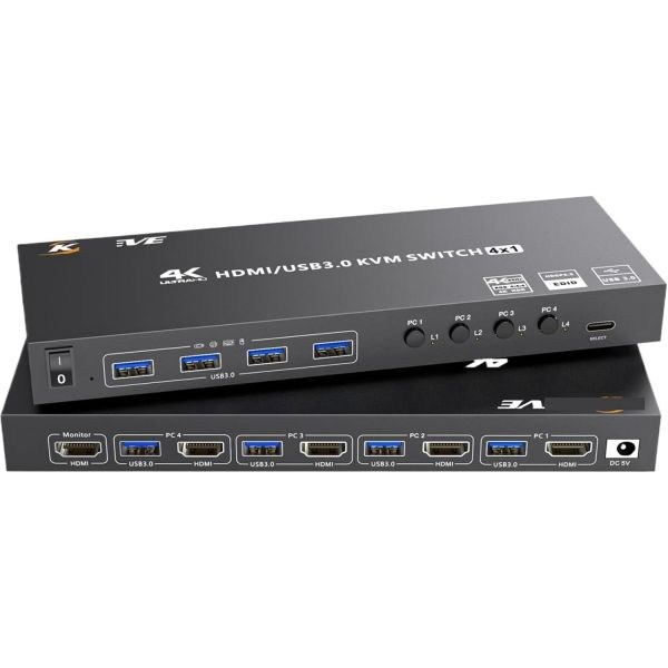 30번: HDMI KVM 스위치 4대 컴퓨터 4K60Hz 시뮬레이션 4포트 USB3.0 PC 공유 1 모니터 키보드 마우스 프린터AU 플러그 포함, 1.5m_With Us Plug, 1개