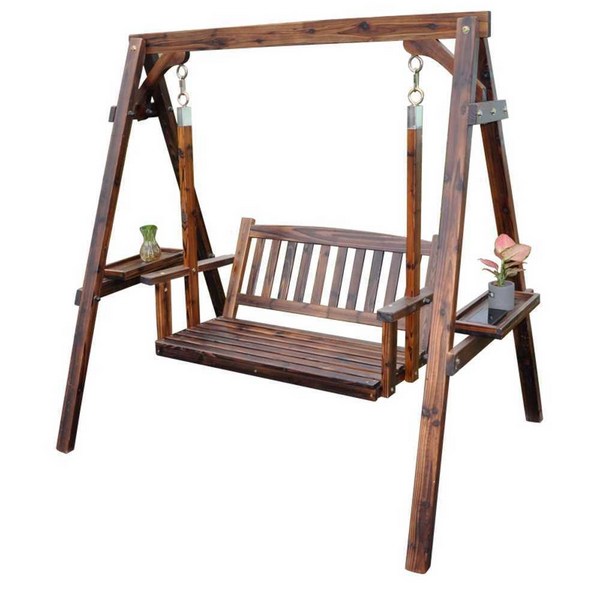29번: [100% 통 원목] 엉클트리 야외 그네 흔들 의자 [강력한 볼트너트 체결], 통원목그네_지붕O_월넛색(2회도색), 통원목그네 지붕O_월넛색상(2회도색)