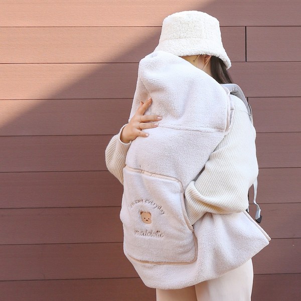 28번: 돗투돗X마롤로뜨 극세사 아기띠워머 아기 망토 블랭킷 후드 담요 겨울옷, 벨보아망토블랭킷_베이지덕