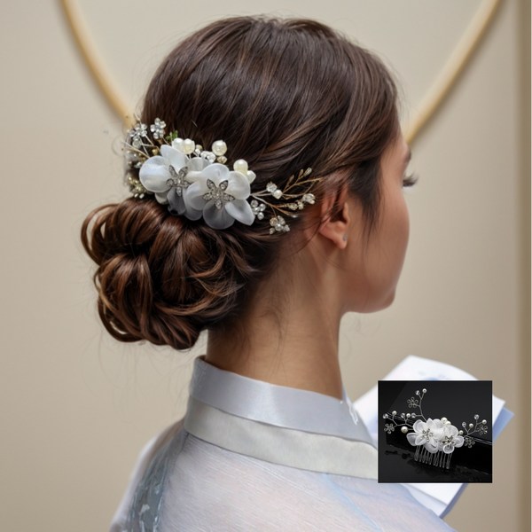 23번: 한복머리장식 혼주 결혼식 올림머리장식 단아한 한복뒤꽂이 셀프 웨딩 헤어핀 헤어코사지 은가비한복