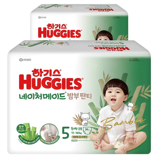 21번: 하기스 2024 네이처메이드밤부 팬티형 기저귀 남여공용, 5단계, 68매